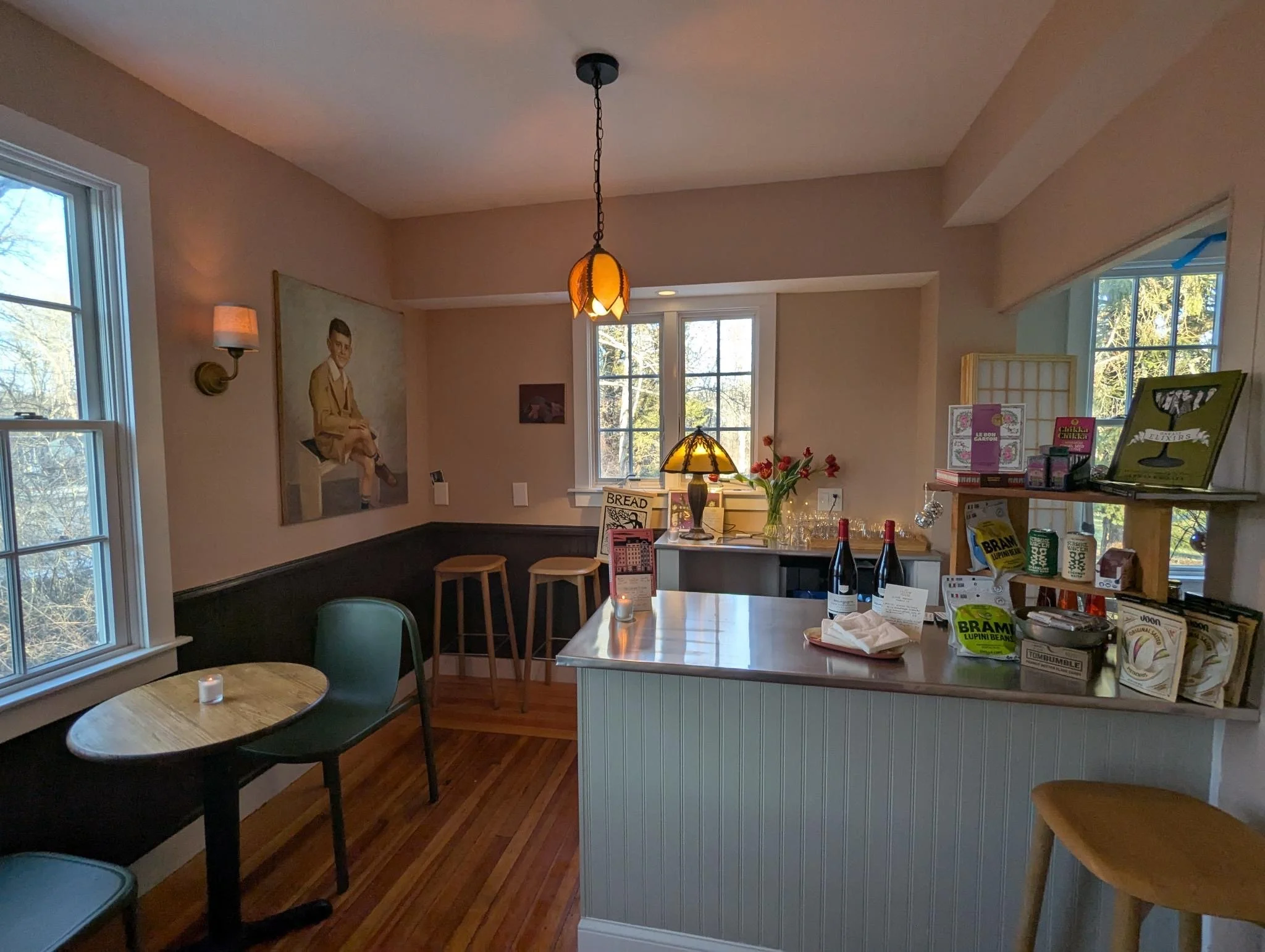 Big news! The Yellow House is excited to announce the opening of "Corner Bar," our new bar/cafe space located in the back room of our bookshop. We have a curated, thoughtful selection of wine, beer, and non-alcoholic beverages available for sale alongside delicious pre-packaged snacks!