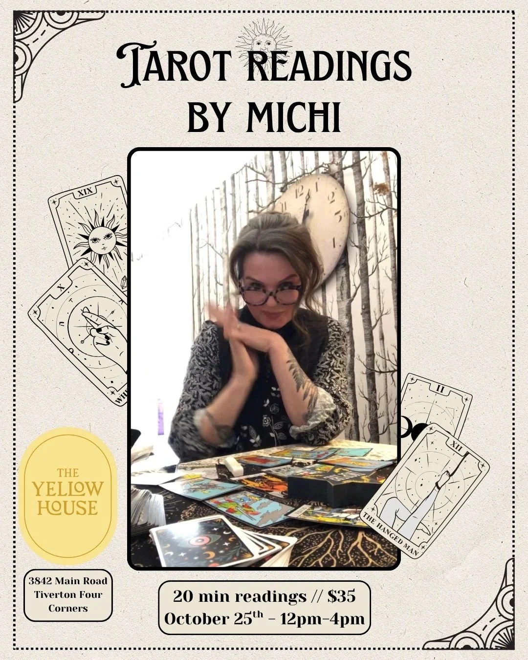 Join Michi for a Fall Tarot Reading Session at The Yellow House! Pass through the snake curtain into our back room and be transported into another realm for a beautiful session with Michi. Each 20 minute tarot and oracle card reading session begins with a mini cleansing/protection meditation. Book ahead with Michi (@mich_tarot) or drop in on 10/25!